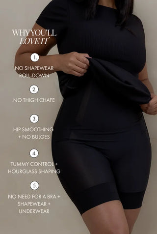 Shapewear shouldn’t squeeze or smash—it should shape and enhance. Our Hourglass Technology features progressive compression to shape your waist without squashing your boobs or booty.
