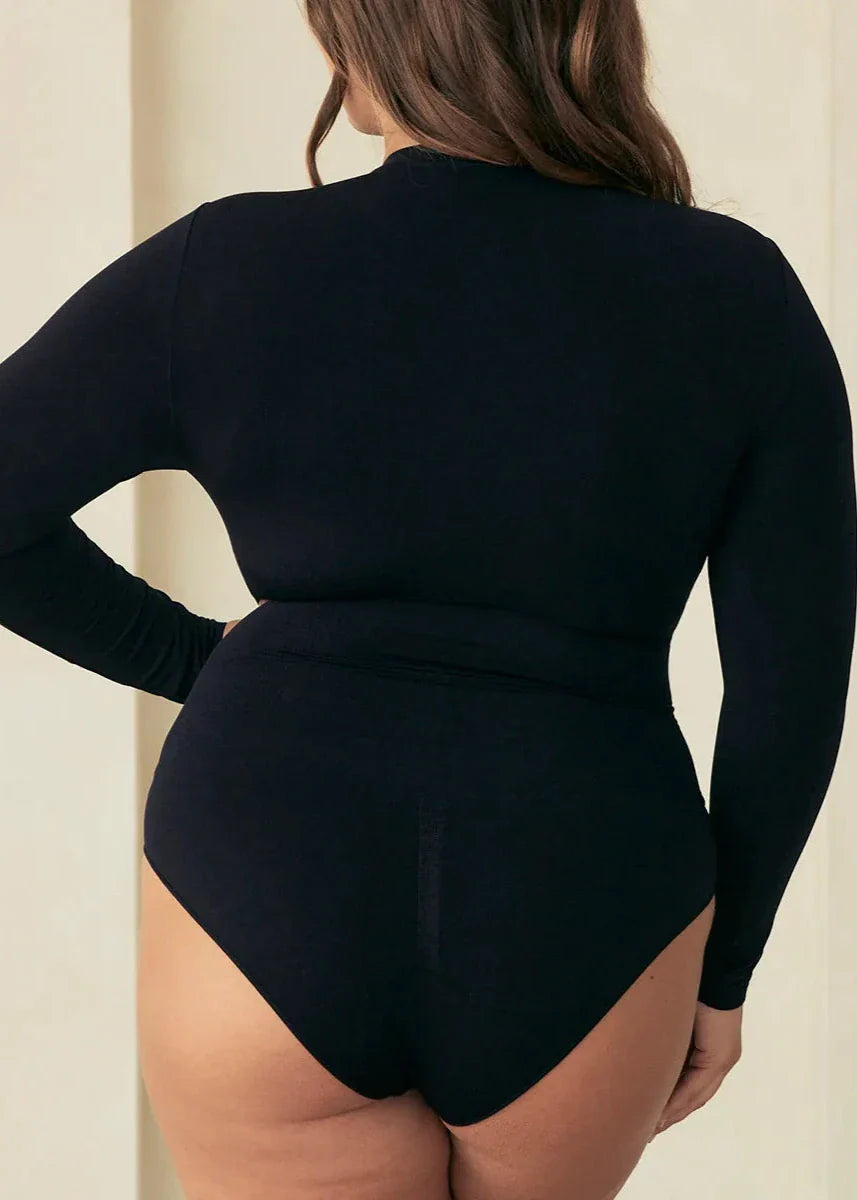Why You'll Love Pinsy Shapewear's Long Sleeve Crew Neck Butter Sculpt® Seamless Shapewear Bodysuit in Black